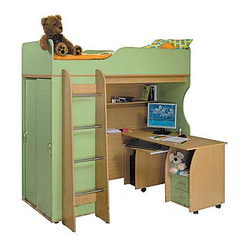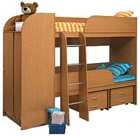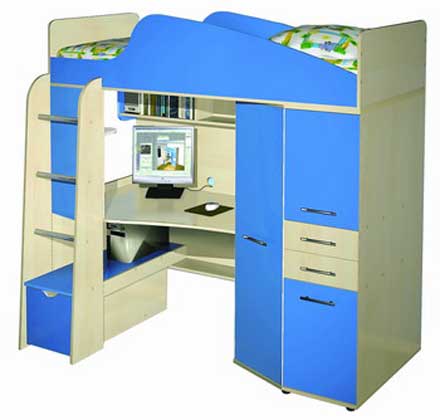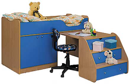 Детская «Нильс» Состоит из кровати, шкафа, компьютерного стола и выкатного ящика. Размер спального места: 190х80см Детскую мебель «Нильс» можно установить в нишу. Расположение шкафа, стола и лестницы можно выбрать при сборке. Цена от 17 630 руб.