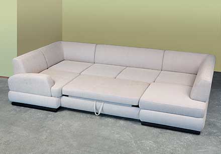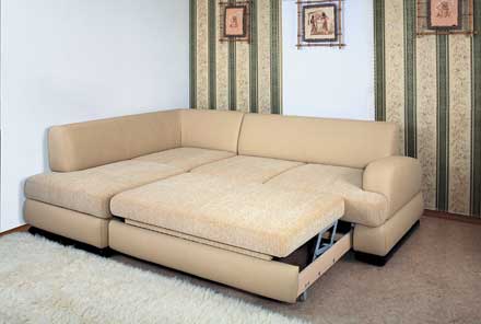 Угловой диван «Жардин 7» Каркас: выполнен из древесины хвойных пород. Наполнитель: элементы сиденья и спального места выполнены из двухслойного высокоэластичного пенополиуретана разной степени плотности, подушки спинки - экологический материал пух «Камфорель». Отличительные особенности: сектор оттоманки, угловой сектор и сектор подлокотников имеют вместительные ламинированные бельевые ящики, механизм подъема оттоманки снабжен газовыми подъемниками и защищен пластиковыми чехлами, модули соединяются с помощью специальных зацепов, ножки – цвет венге. Механизм трансформации: «Дельфин» с высоким и удобным спальным местом. Комплектация: модульный. Примеры возможных комбинаций: ОЛ +ДП (угол малый левый), Габаритные размеры (мм): 2660х1870х900 (спальное место 2080х1540), СЛ+УС+Д+ОП (П – образный), Габаритные размеры (мм): 1970х3480х1870х900 (спальное место 2900х1470). Цена от 59300 руб.