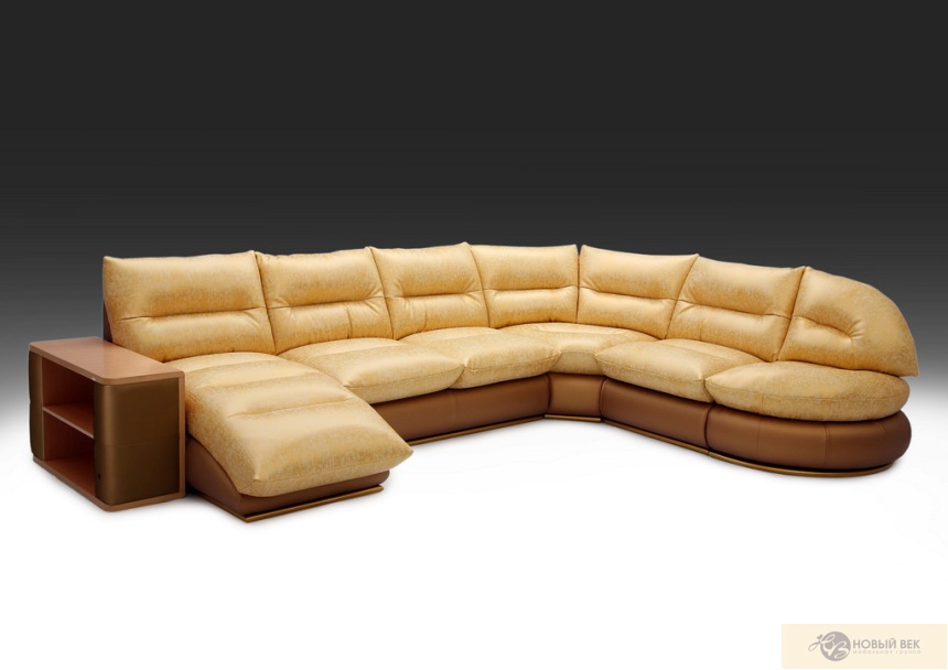 «Кредо д`Люкс 8» Мягкие элементы сиденья дивана — съемные. Все посадочные подушки у этой модели производятся из формовочного пенополиуретана. Чехлы из мебельной ткани дублируются листовым нетканым полотном «синтепон» финского производства. Наполнение подушек спинок — «Роллонконф». Металлический механизм трансформации «седафлекс» — трех складной, каждая секция механизма с опорами. Разработан специально для ежедневного сна. В основе матраса материал «струттофайбер» (синтетическое волокно, не дающее усадку и сохраняющее тепло). За счет такой «начинки», эта модель отличается особенной мягкостью и удобством. На Ваш выбор, мы предлагаем два варианта решения дизайна подлокотника: — мягкий с уникальным двухпозиционным откидным механизмом — в виде тумбочки с деревянными полками (широкий выбор цвета декора). Оттоманка и кресельная часть имеют вместительные емкости для белья. В угловом секторе можно заказать бар с подъемным механизмом. В комплектации имеется пуф — стол.