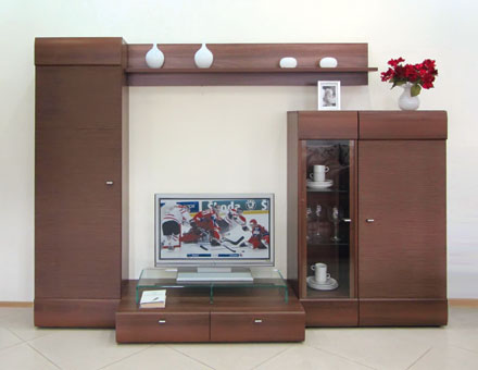 Гостиные Garmonia идеально подходят как для просторных, так и для небольших уютных комнат. Сочетание изящных элементов, вместительных модулей, скрытых и открытых площадей, многофункционально и удобно. Личные вещи можно скрыть от посторонних глаз за оригинальными дверками, а памятные сувениры, фотографии и стильные аксессуары разместить на полочках и за стеклянными фасадами. Корпус - ЛДСП, Фасады - МДФ, шпон натуральный Цвет: орех аида табак, дуб миланский. Возможно дополнительно укомплектовать светильником.