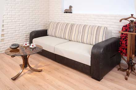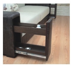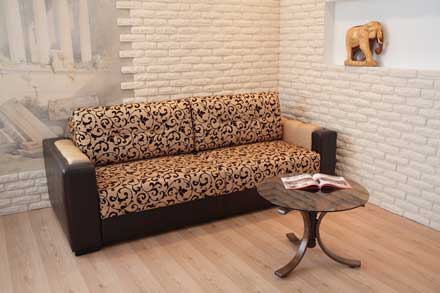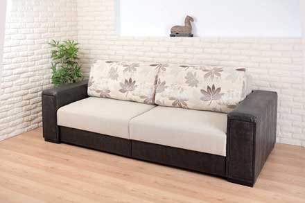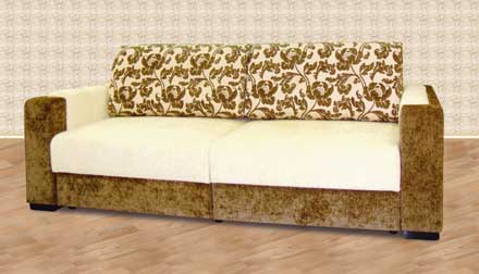 Диван «Жардин 1» Механизм трансформации: двойной «тик-так» («шаговая» еврокнижка). Комплектация: большой диван (БД). Описание изделия: каркас изделия выполнен из калиброванного бруса древесины хвойных пород, многослойной фанеры и ЛДСП. Удобное спальное место на усиленном пружинном блоке «Боннель» включает в себя также многослойное дополнительное покрытие: термовойлок, высокоэластичный пенополиуретан, синтепон. Подушки спинки изготовлены из высокоэластичного пенополиуретана. Потребительские особенности: данный диван можно поставить на любую ровную поверхность пола (независимо от покрытия): «шаговый» механизм обеспечивает безопасность и сохранность как паркета, так и напольного покрытия. Диван предназначен для повседневного использования, имеет вместительные секции для белья. Для предотвращения контакта со стеной во время сна предусмотрена задняя спинка. Отличительные особенности: трансформация дивана по частям имеет ряд преимуществ по сравнению с обычными «еврокнижками»: при раскладывании одной половины изменяется внешний вид в интерьере (вместо обычного дивана в помещении стоит угловой диван левого или правого исполнения). Подлокотники дивана легкосъемные и могут быть заказаны на выбор из имеющихся вариантов. Размеры: 2360х1060х920мм (сп.м. 1960х1570мм)