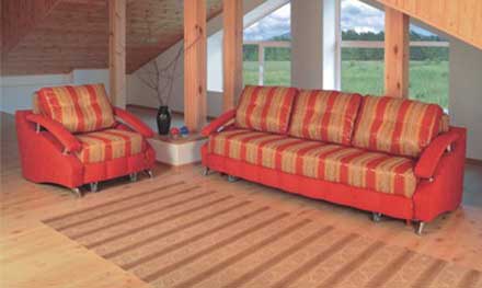 Комплект мягкой мебели «Сантана 7» Отличительные особенности: кресло-кровать – наполнитель высокоэластичный пенополиуретан, диван имеет вместительный бельевой ящик, легкосъемные подушки спинки, съемные подлокотники. Комплектация: Большой диван (БД), Кресло-кровать (Кр-кр). Габаритные размеры (мм): БД 2300х1080х940 (спальное место 2050х1460), Кр-кр 930х1080х940 (спальное место 1920х690). Цена от 21600 руб.