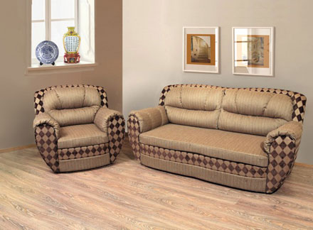 Визит 2 Каркас: древисина хвойных пород, многослойная фанера, ЛДСП. Наполнитель: в основании сиденья - пенополиуретан, синтепон. Подушки спинки - гипоаллергенный пух «камфорель». Механизм трансформации: большой диван, кресло - выкатной; угловой диван - «дельфин». Комплектация: большой диван, кресло, угловой диван. Габаритные размеры, мм: 1960х980х920 Спальное место, мм: 1900х1450